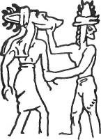 Полагая, что ему удалось разделить двух соперничавших братьев, Ану «взмыл в высокое небо. Но в небе Земли события приняли неожиданный оборот. Возможно, из осторожности Кумарби был оставлен на орбитальной станции, вращавшейся вокруг Земли. Когда Ану вернулся на станцию, собираясь отправиться в длительный полет к Нибиру, его встретил разъярённый Кумарби. После резких слов противники пустили в ход кулаки: «стал с Ану сражаться Кумарби, Кумарби, потомок Алалу, стал на небе с Ану сражаться». Когда Кумарби одержал победу в поединке, «из рук его вырвался Ану». Но Кумарби удалось схватить ускользаюшего врага за ноги: «он укусил Ану в ногу, откусил ему силу мужскую». Археологи нашли древние рисунки, иллюстрирующие рассказ об этом поединке (рис. 23а), а также изображающие единоборство аннунаков (рис. 236), у которых удар в область гениталий применялся довольно часто.